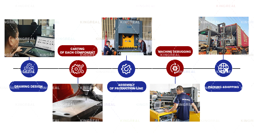 كمصنع محترف لمعدات معالجة اللفائف، فإن KINGREAL يمكنها توفير الحلول الكاملة، مثل آلة قطع اللفائف وآلة قطع اللفائف حسب الطول. ويمكننا أيضًا توفير خط إنتاج تسوية وتثقيب الصفائح المعدنية للعملاء.